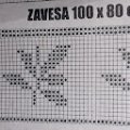 Израда: Велицину мозете одредити по зељи ,вазно је да бордура,доња и ивицна,прати завесу а централни моззив се постави тако на средини.Ако зелите да направите вецу завесу мозете поновити висе пута,у једном низу,централни мотив а бордуре продузите.Искукицајте ланчић зељене дужине и према распореду на семи радите пуне и празне квадратице од 3 стубица с два навијутка. Мотив А је вертикална бордура,Б је централни мотив а мотив Ц представља доњу хоризонталну бордуру.